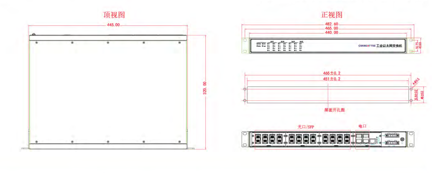 安装 | 19英寸1U机架式,支持前后出线安装 |