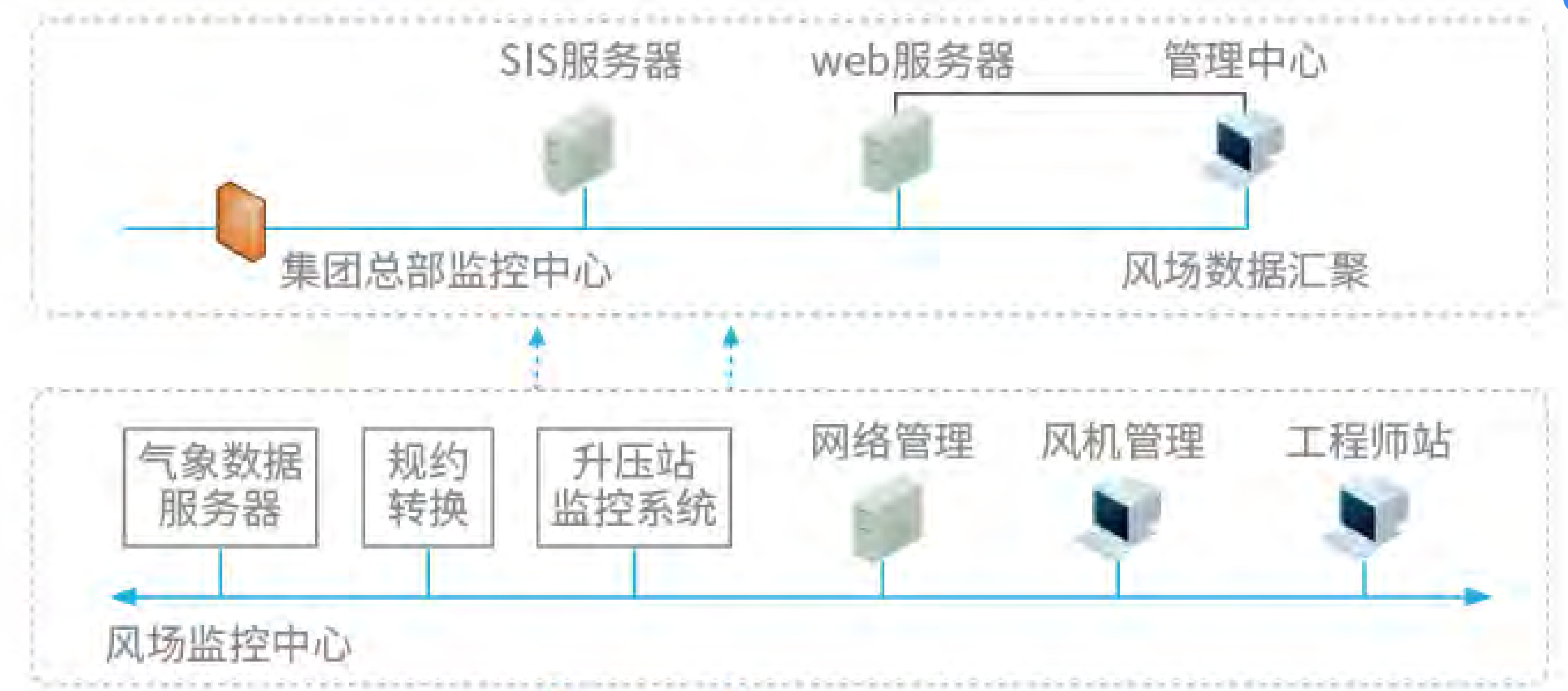 风力发电的原理,是利用风力带动风车叶片旋转,再透过增速机将旋转的速度提升,来促使发电机发电。风力发电系统主要由风轮、塔简、变桨系统、机舱控制器系统、箱变和变压器、通讯系统组成。风电场通讯系统主要对风电场内的风力发机组及场内变电站的设备运行情况及生产运行数据进行实时采集和监控,使监控中心能够及时准确地了解风电场的生产运行状况。