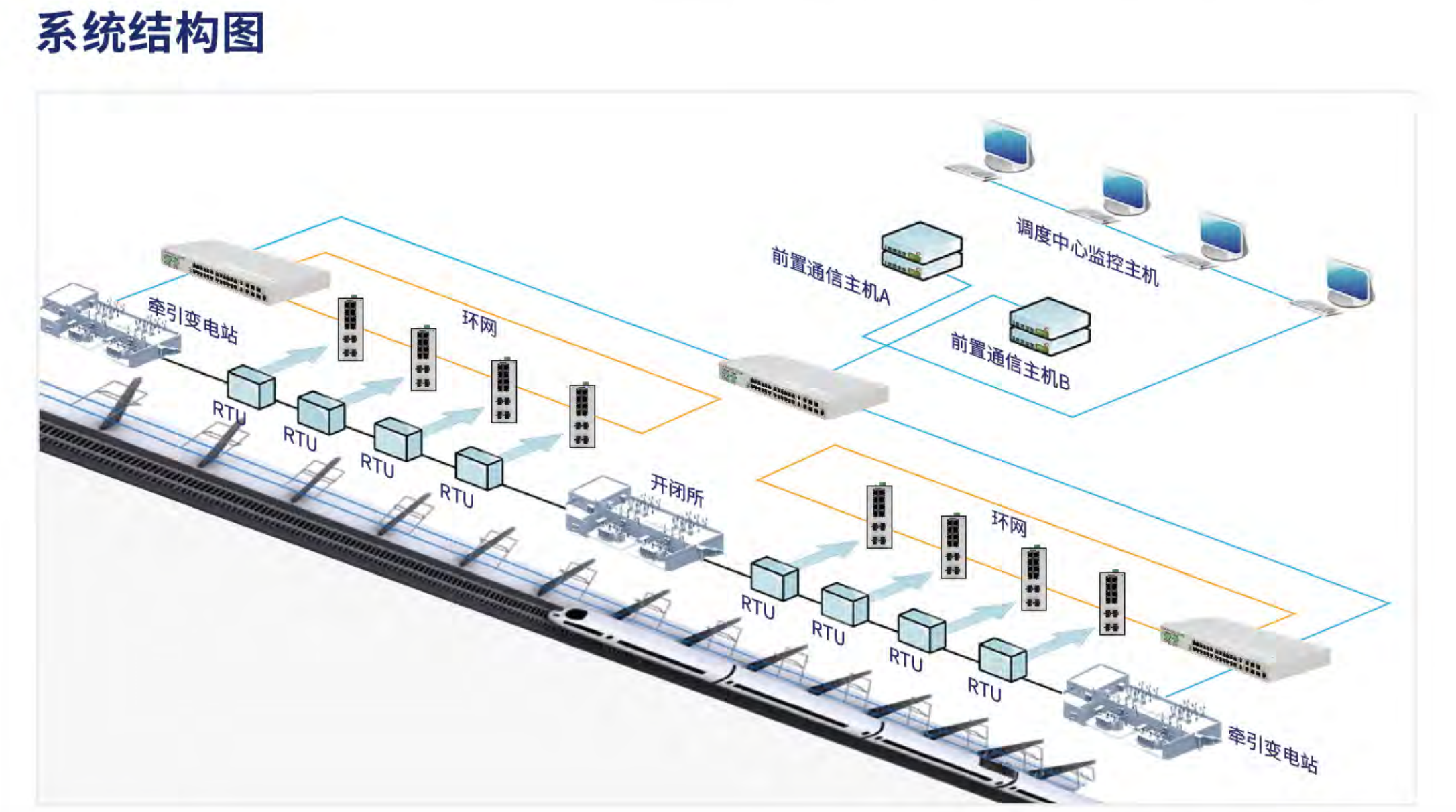 列车牵引供电系统是列车运行的基本设施。在轨道沿线安装的变压器,开关柜,低压配电柜和控制/保护设备等需要电力SCADA系统进行实时的监控以保证系统正常运行。
