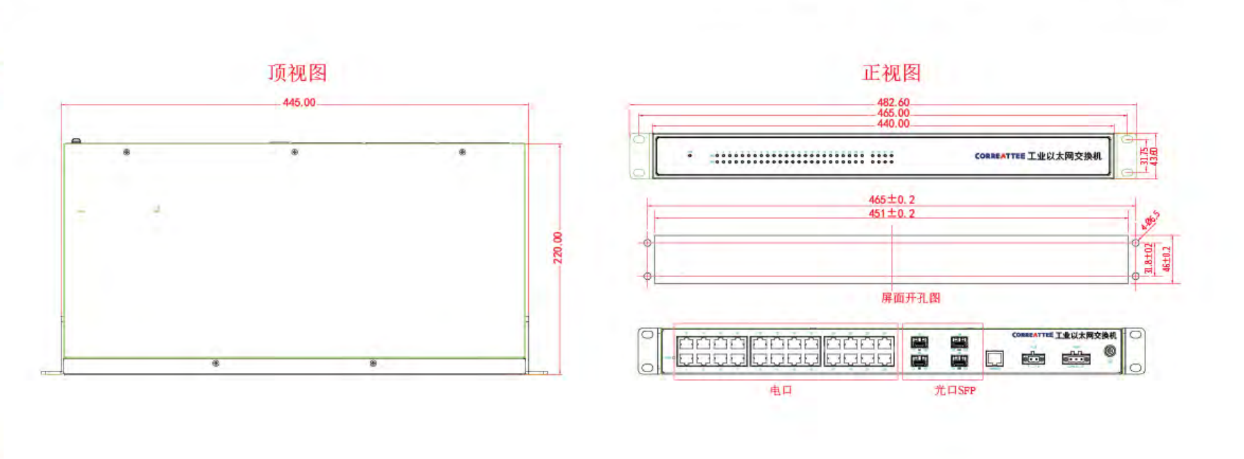 尺寸 | 440mm*320mm*44mm 标准19英寸1U |