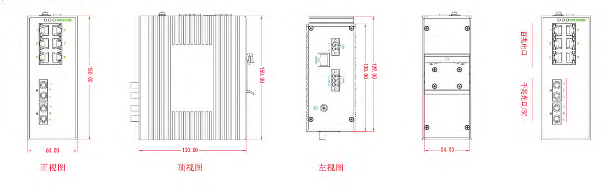 备注:FM:百兆多模,FS:百兆单模,GM:千兆多模,GS:千兆单模,光接口:SC/ST/LC可选,P1: 110/220V AC/DC单电源, P2: 110/220V AC/DC双电源,L1: 24/48V DC单电湃,L2: 24/48V DC双电源 |